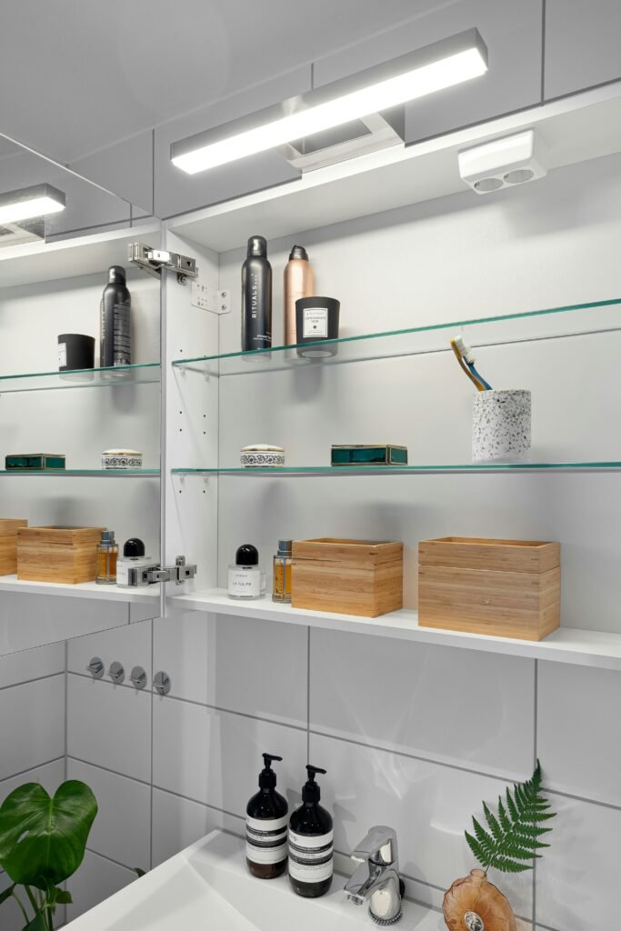 Smart Storage: Hidden cabinets and floating shelves to maximize space.
